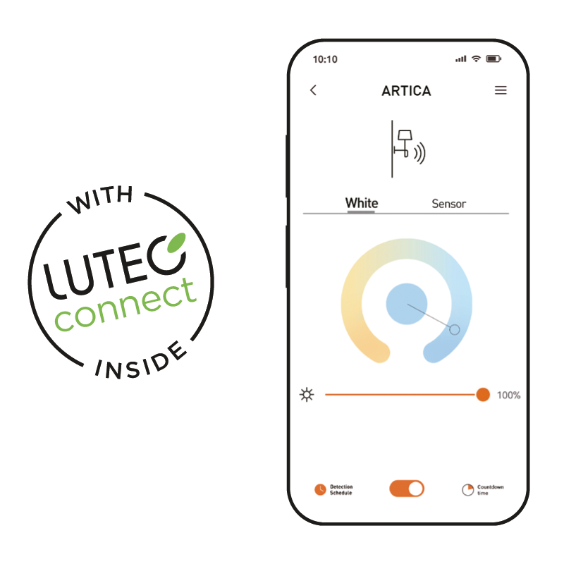 An IR sensor with 180° registration angle and a range of up to 18m are fully integrated. Pleasant and powerful light thanks to the high-quality LED panel. The integrated LED connected modulewill give you all the freedom to control your light on your smart devices.