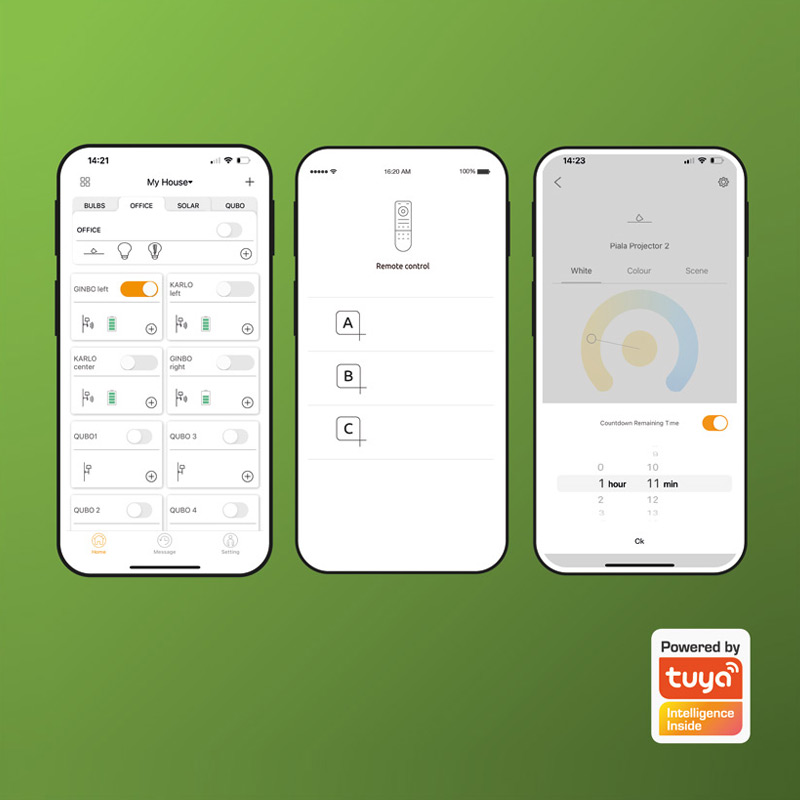 Our ambition is to offer several ways to control your lighting, from the simplest method to the most sophisticated, so that everyone can find the right option for them. Choose from simple wall switch control with a single click, using a remote control from the sofa and pointing at one or more lamps, use of the purpose built mobile application, user created schedule programming or even your voice to attend to your lighting needs or desires.