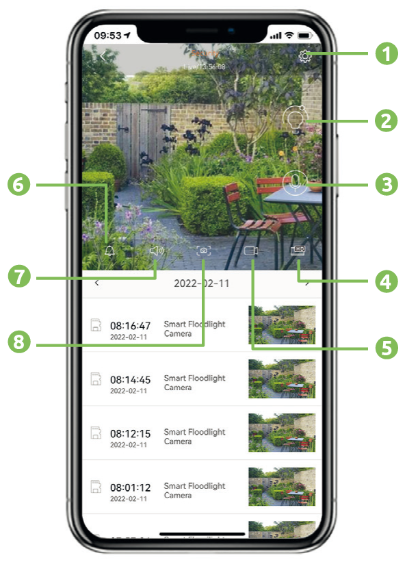 1 – Camera recording ON/OFF