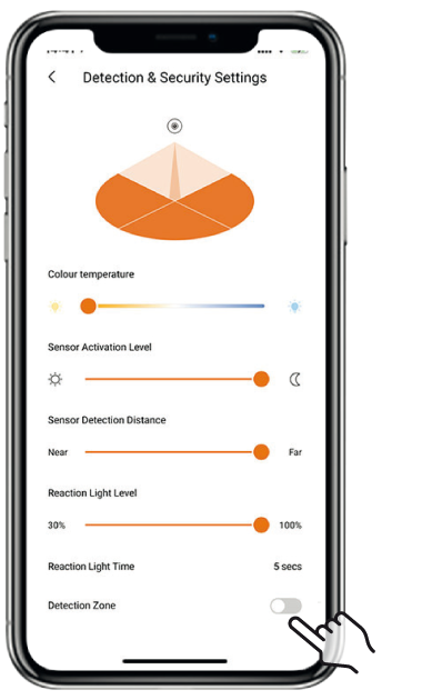 5 – Adjust the time the light illuminates for after detection/activation (5 secs minimum to 15 minutes maximum)