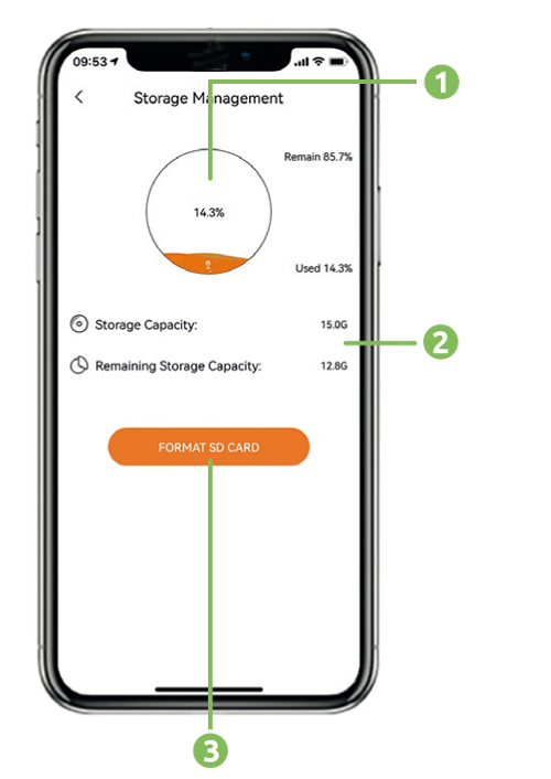 3 – You can directly format the SD card from the App. Do not forget to save content elsewhere in case you want to keep any recordings.