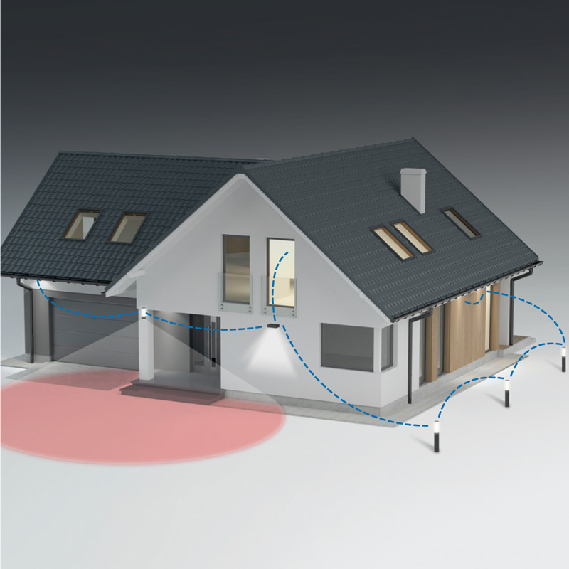 When motion is detected by the camera, all other lights in the group will illuminate simultaneously. You can then take control at any time and thus turn off or dim the lighting of the group